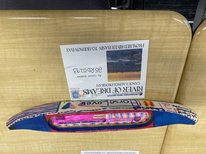 My canoes name is Chariat. It was a sunny but slightly windy day. I launched him from East Grand Forks MN into the Red River of the North. Chariat was excited but scared. What if he doesnt make it I think Chariat will wind up in Hudson Bay. First Chariat heads north but he goes through the confluence of the Pembina River He then goes through another confluence on Badger Creek Things are not looking good for Chariat. Next he gets stuck in the mud on the bank Things are getting worse and worse for Chariat But then a horse walks up to him and lightly chews on him. A lady walks up takes him out and says Wow I see the message Lets put him back into the beautiful Red River. And she does. Unfortunately he is in a storm. Andhe gets stuck underwater. The good news is he soon gets unstuck The bad news is a shark with bad eyesight tries to eat him. He goes down the throat but the shark chokes on him. Sorry shark Finally Chariat makes it to Hudson Bay He also rejoins his other friends like Breck GJVE Cat Brad Betty Rosemary Nash the Great Jessa Karen and Holiday Hammy. THE END