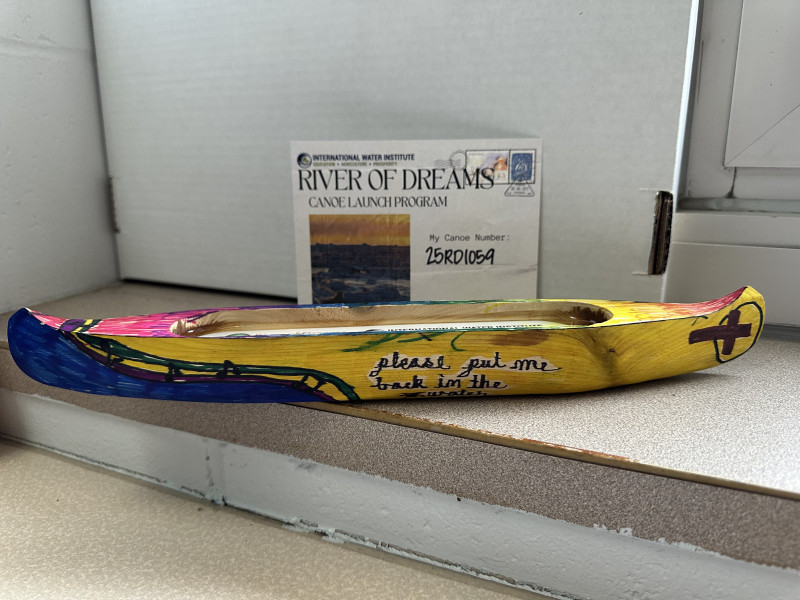My canoe will make it all the way to the Hudson Bay. I hope it sees people and meets people. Along the way my canoe's journey will be boring. In the first few minutes of my canoe's ride I hope it get accidentally caught by a fisherman and they write to me. An hour later a person picks my canoe up and drives me at least a mile farther. Then I hope my canoe comes across a waterfall that brings it 5 feet down. Then a speedboat passes by and tips my canoe over. The driveer will flip it back up.