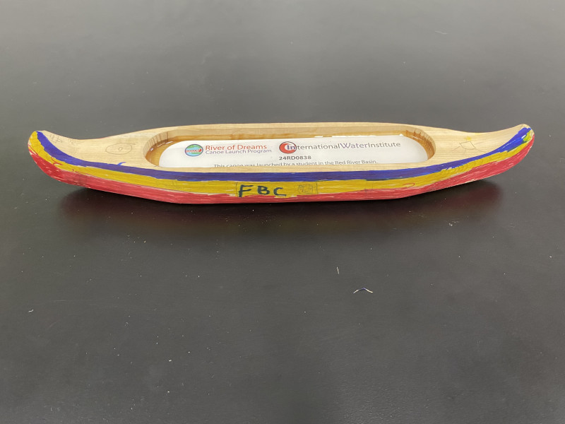 I hope my canoe will see beaver beluga whales and birds. It will be a happy ride. I think it will end up in a mud puddle but somebody will pick it up and keep it and put it back on its journey. I hope it will see polar bears little kids and go through Red River Pembina River and hopefully the canoe will touch an fish.