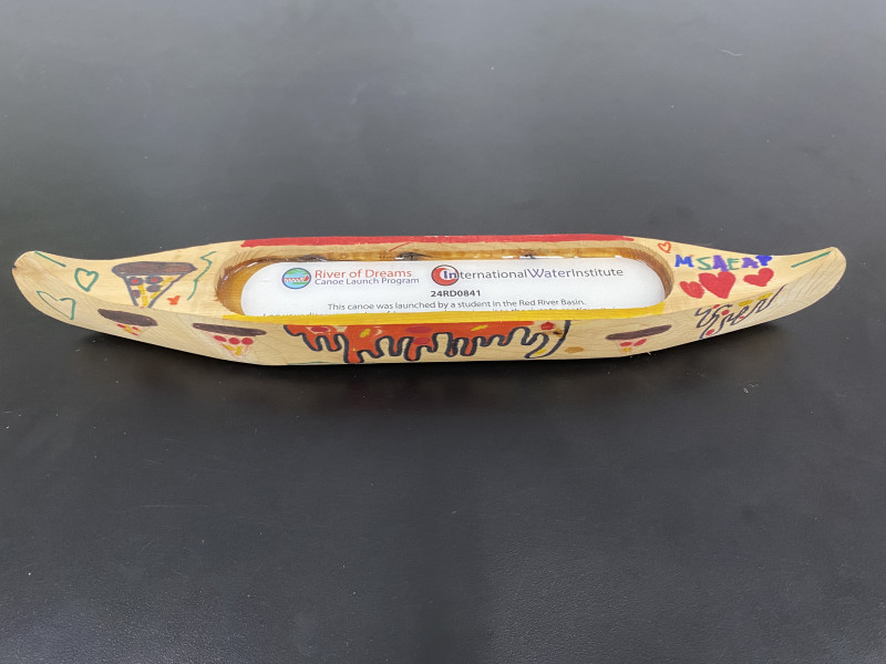 I hope my canoe travels to Hudson Bay and sees lots of cool things I hope a kid picks it up out of the water and takes it home and puts it back in the water in the spring to go on. As the journey continues I hope it enjoys life and has lots of fun I hope one day I will see it again when I have kids and grandkids