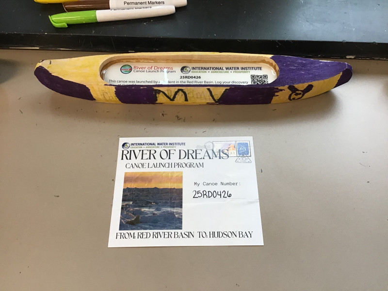 The next morning I woke and I was in someones hand. It was very bright outside. He said Where are you from Then he turned me over and read the message I am Paddle to Hudson Bay. If you find me put me back in the river. So he put me back in the Sandhill River and my journey continued. The man said Goodbye and good luck with your journey