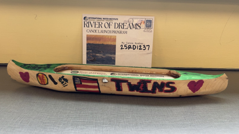 I hope for my canoe to make it to Hudson Bay. I hope it sees a turtle deer another canoe. I hope my canoe meets a little girl. Along the way my canoes journey will be fun and exciting. This canoe was launched from the Red River in Fargo North Dakota. If you find my canoe I hope that you put it back in the water so that it can keep going on its journey.