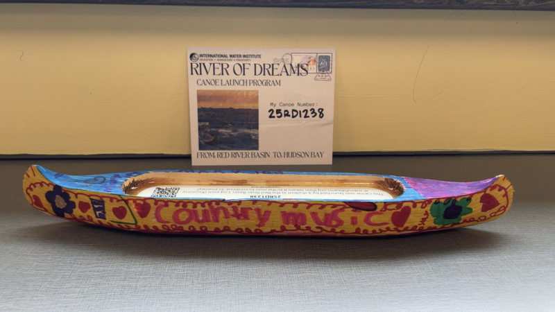 I hope for my canoe to make it to Hudson Bay. I hope it sees turtles fish and deer. I hope my canoe meets another canoe. Along the way my canoes journey will be awesome and fantastic. This canoe was launched from the Red River in Fargo North Dakota. If you find my canoe I hope that you put it back in the water so it will continue its journey.
