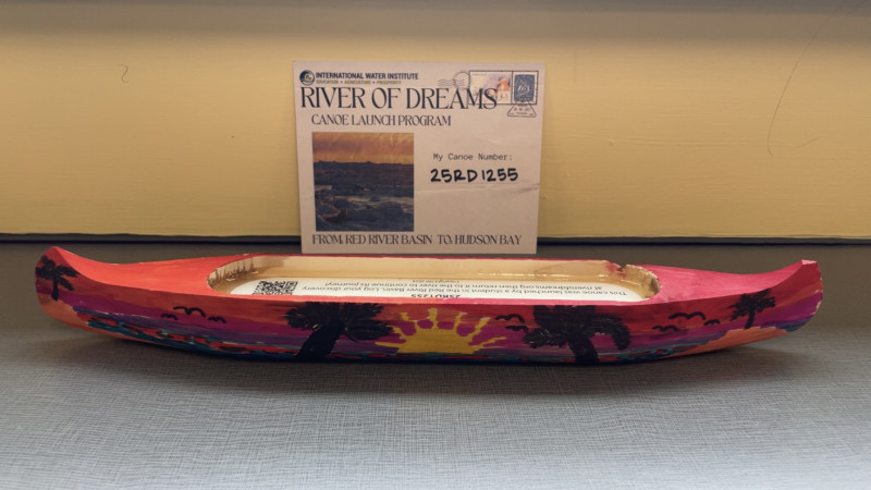 I hope for my canoe to make it to Hudson Bay. I hope it sees fish cyotoes deer. I hope my canoe meets another canoe. Along the way my canoes journey will be to make it to the ocean and make it all the way. This canoe was launched from the Red River in Fargo North Dakota. If you find my canoe I hope that you put it back in the water so it can continue its journey.