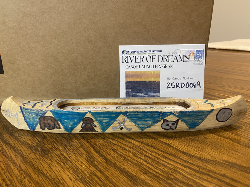 I hope my canoe makes it all the way to the ocean. I want my canoe to see polar bears and fish. I hope it sees lots of wildlife and nature. I wish it could see a walrus. In the winter I hope someone finds it and can bring it to a new place to start a new adventure. My canoe is going to be colored blue because it means loyalty confidence power and trust. Some symbols I have are a cross and angel wing so my canoe will be guarded on its journey. I'm going to add a dog because I have one dog. Im also going to add a hockey stick because I play hockey and patterns for some personalities.